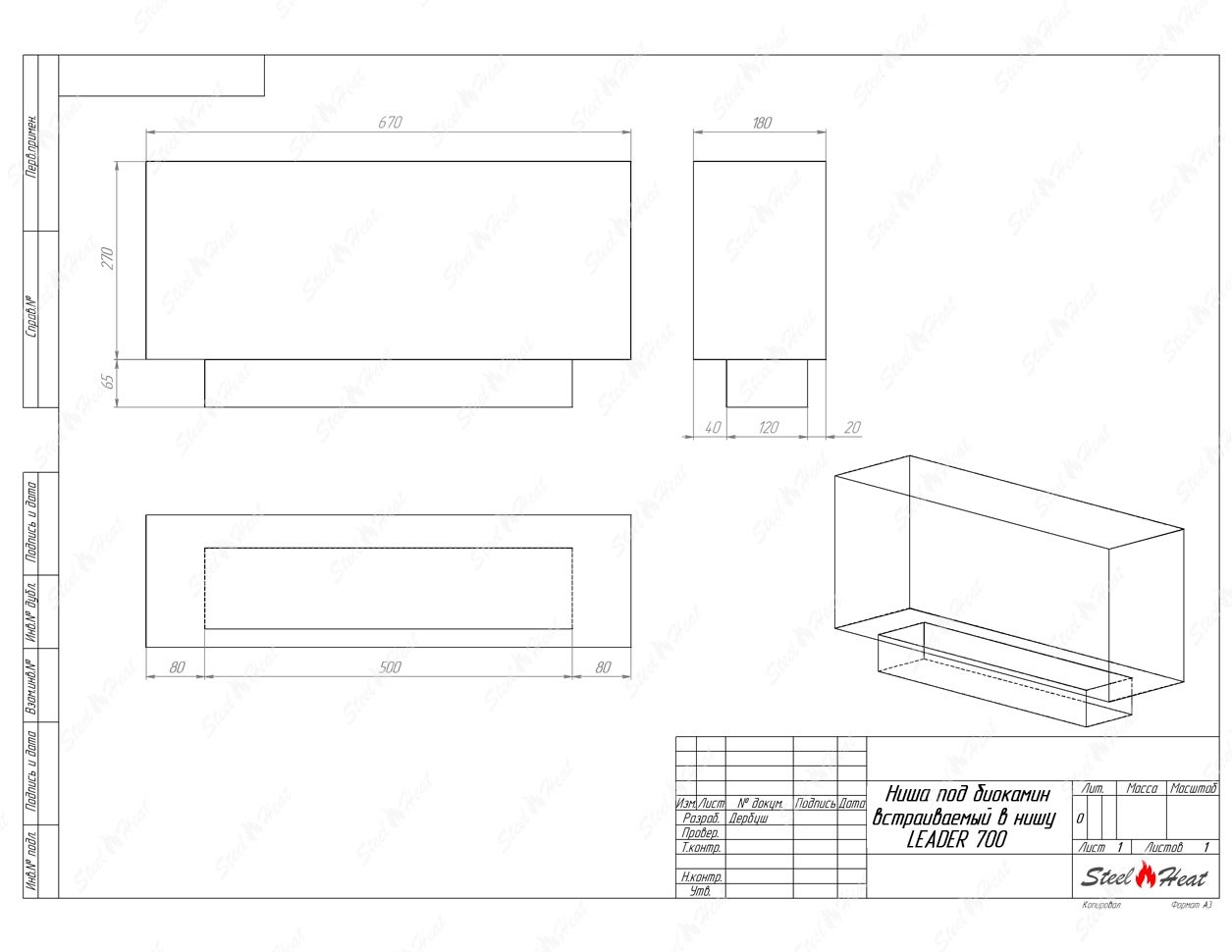 Встраиваемый Биокамин SteelHeat LEADER 700 предназначен для встраивания в глухие ниши из гипсокартона, кирпича, пеноблоков, бетона.