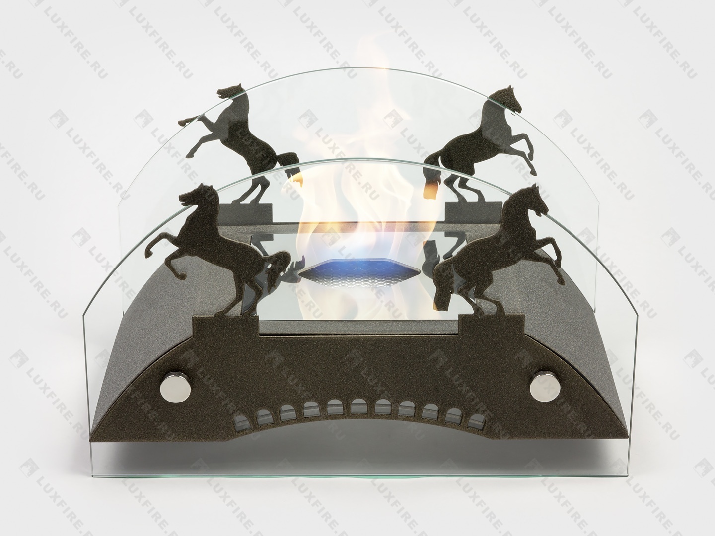 Представляет собой биокамин, который создан по мотивам мостов дореволюционной России середины ХIX-начала XX века и состоит из металлического корпуса с топливным блоком Lux Fire 150-1 огражденным с двух сторон скругленными защитными стеклами на дистанционных держателях и декоративными металлическими накладками в виде «Коней»
